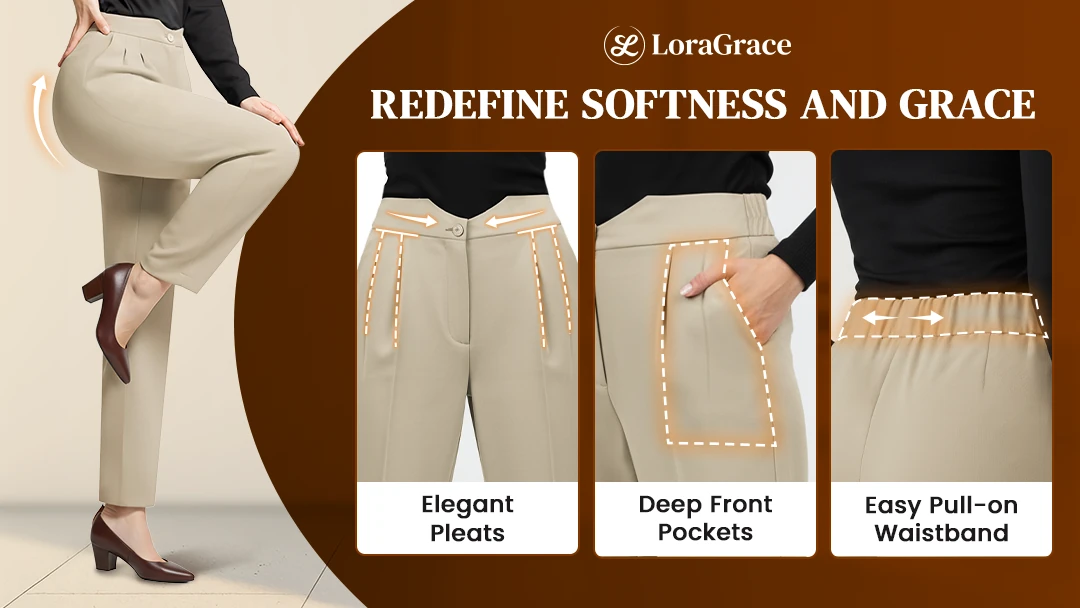 Discover timeless elegance with LoraGrace - pleated straight-leg pants designed for all-day comfort, effortless movement, and a polished fit, thoughtfully made for women who seek both style and ease