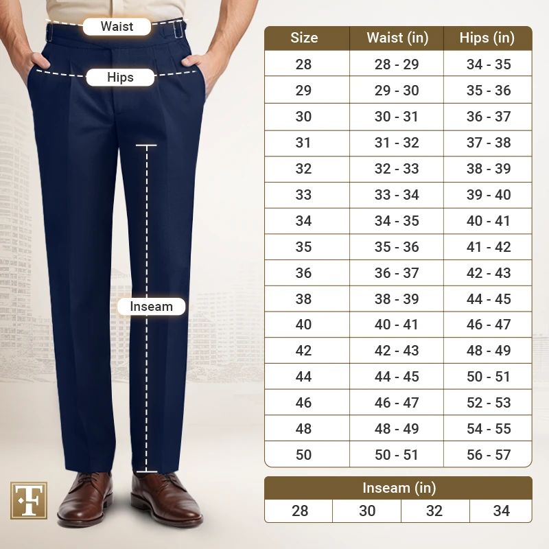 Please refer to this chart below to get your correct waist, hips and inseam size. All measurements are in inches.